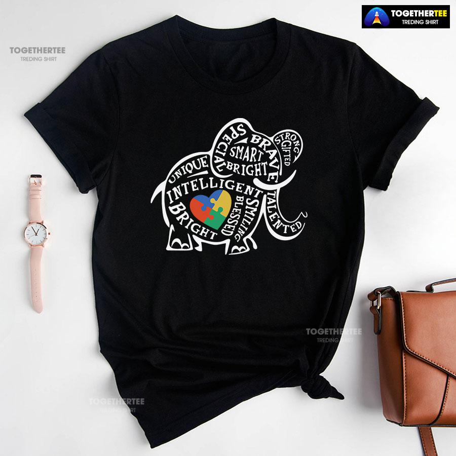 Elephant Typography Autism Awareness T-Shirt – Small Tee
