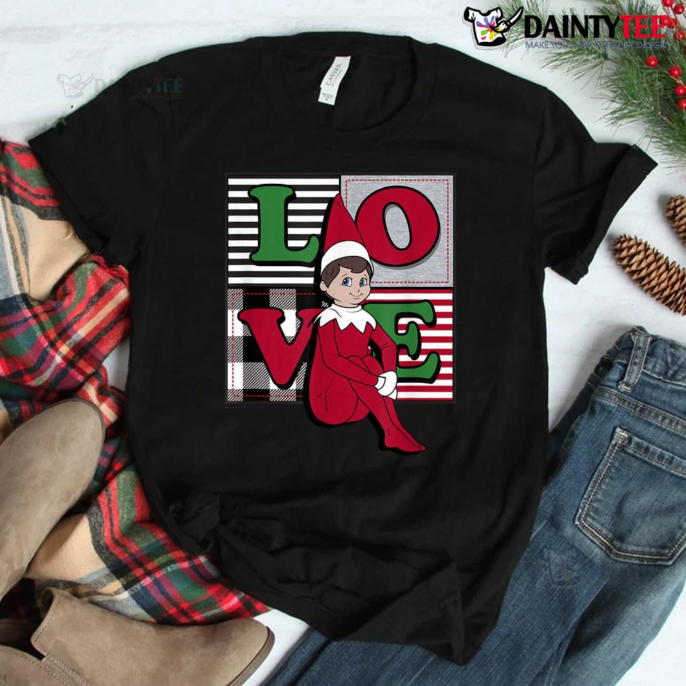 Elf On The Shelf Christmas Love Stacked Plaid Squares Logo Shirt