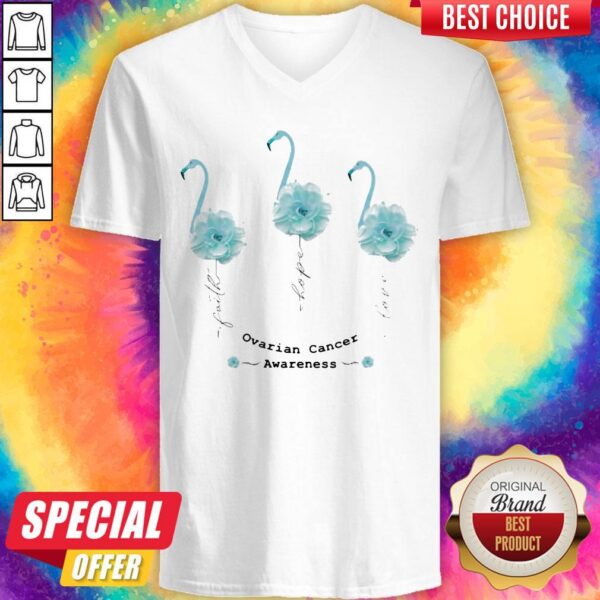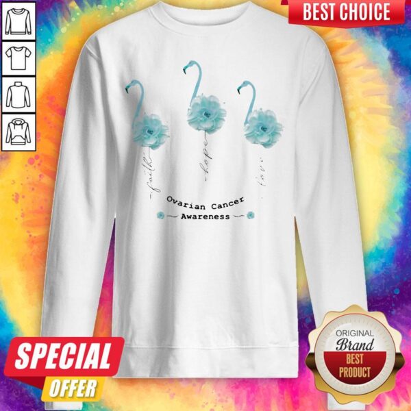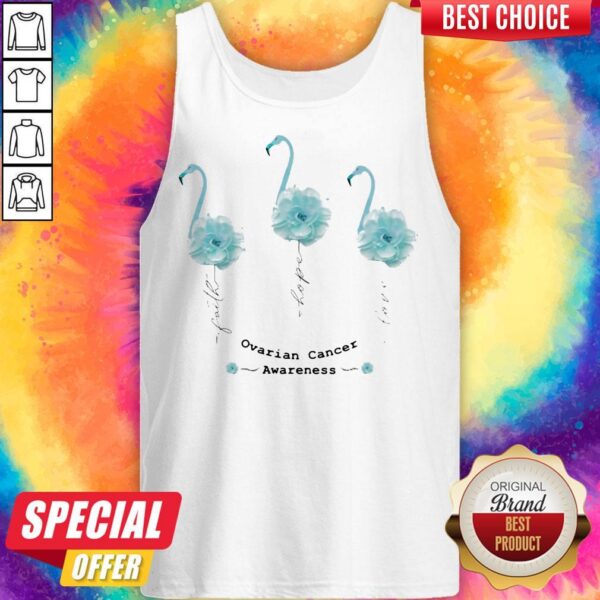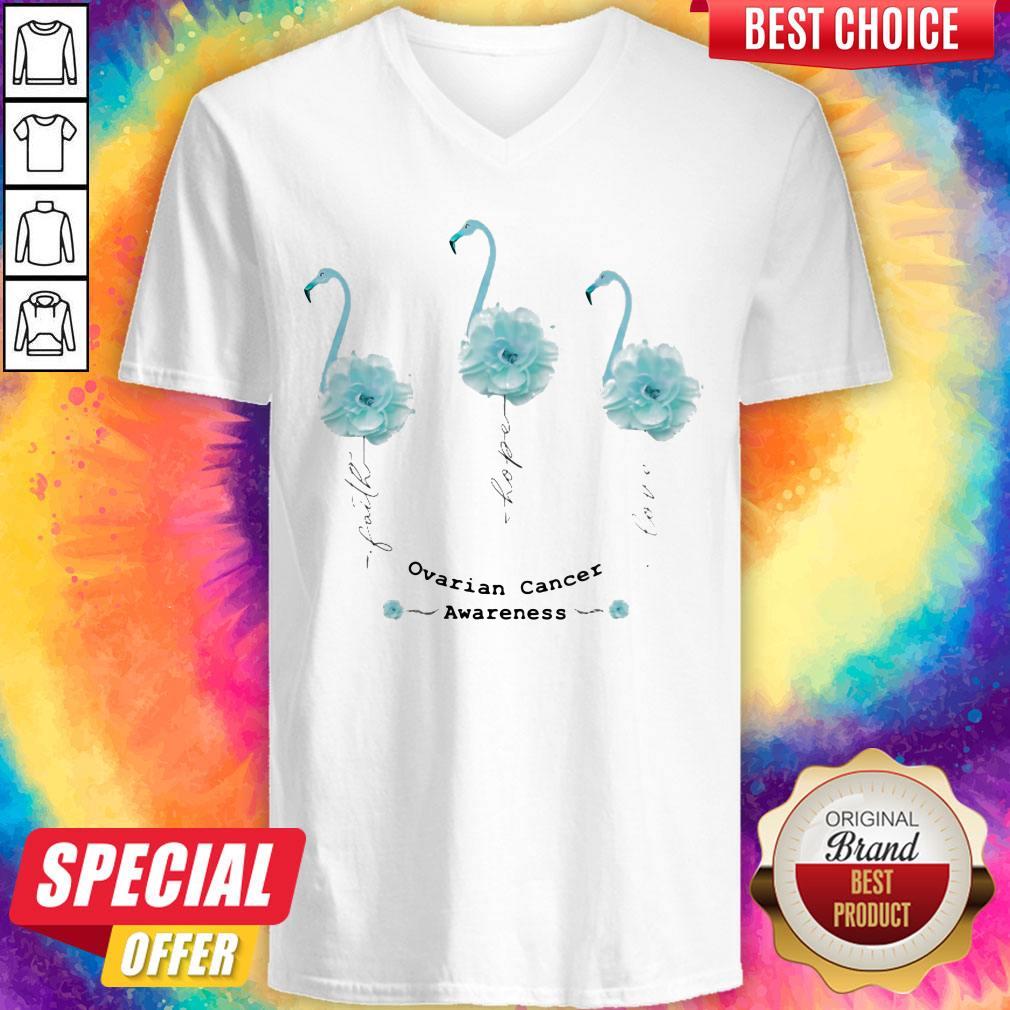 Faith Hope Love Ovarian Cancer Awareness Flamingo Flower Shirt
