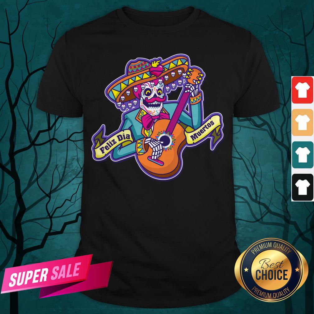 Feliz Dia Muertos Skeleton Man Play Guitar Day Dead Shirt