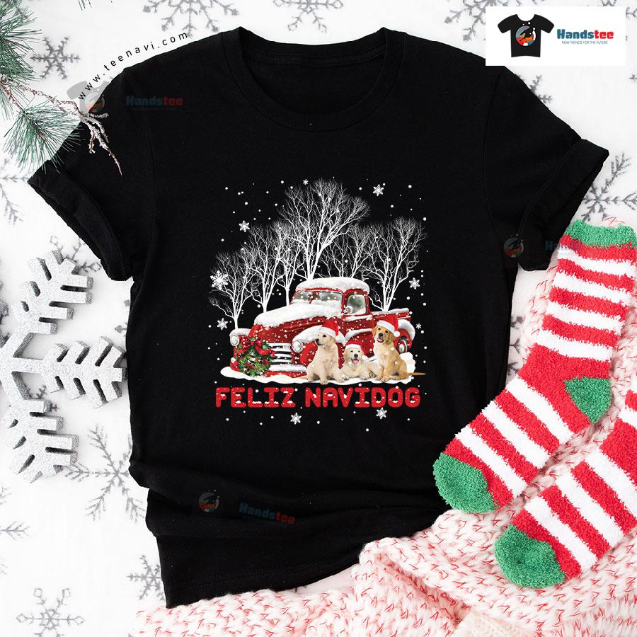 Feliz Navidog Golden Retriever With Christmas Hat for Christmas T-Shirt