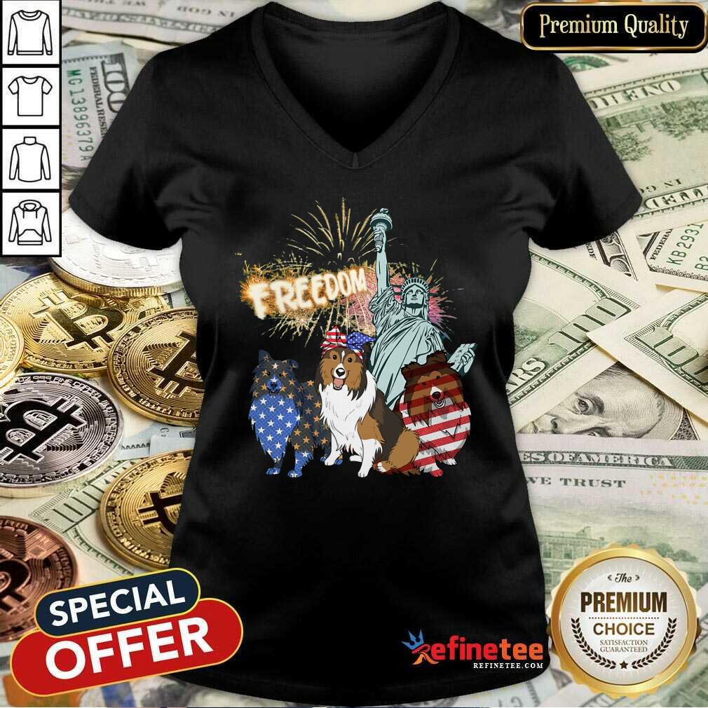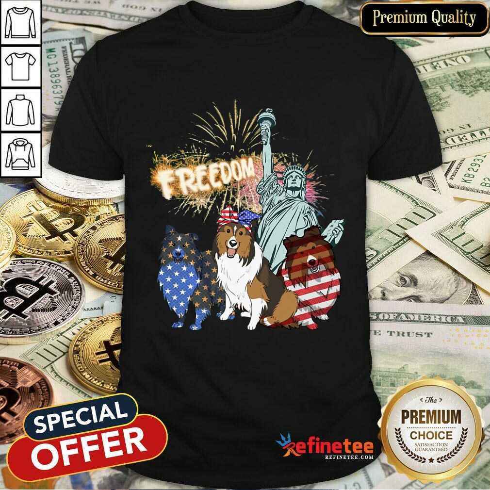 Freedom Dog Shetland Sheepdog Statue Of Liberty Shirt