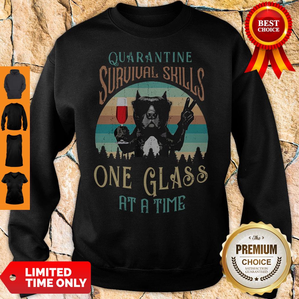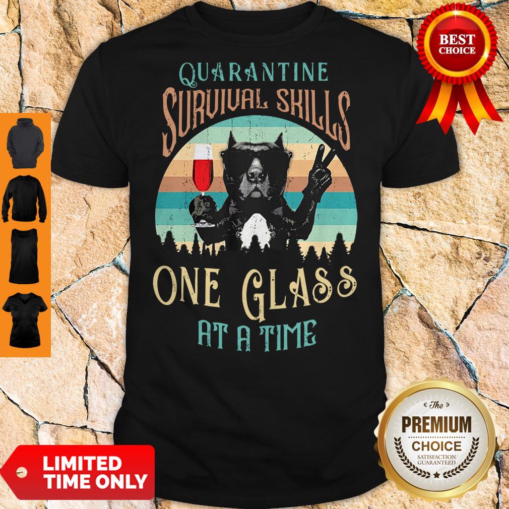 French Bulldog Drink Wine Quarantine Survival Skills One Glass At A Time Vintage Shirt
