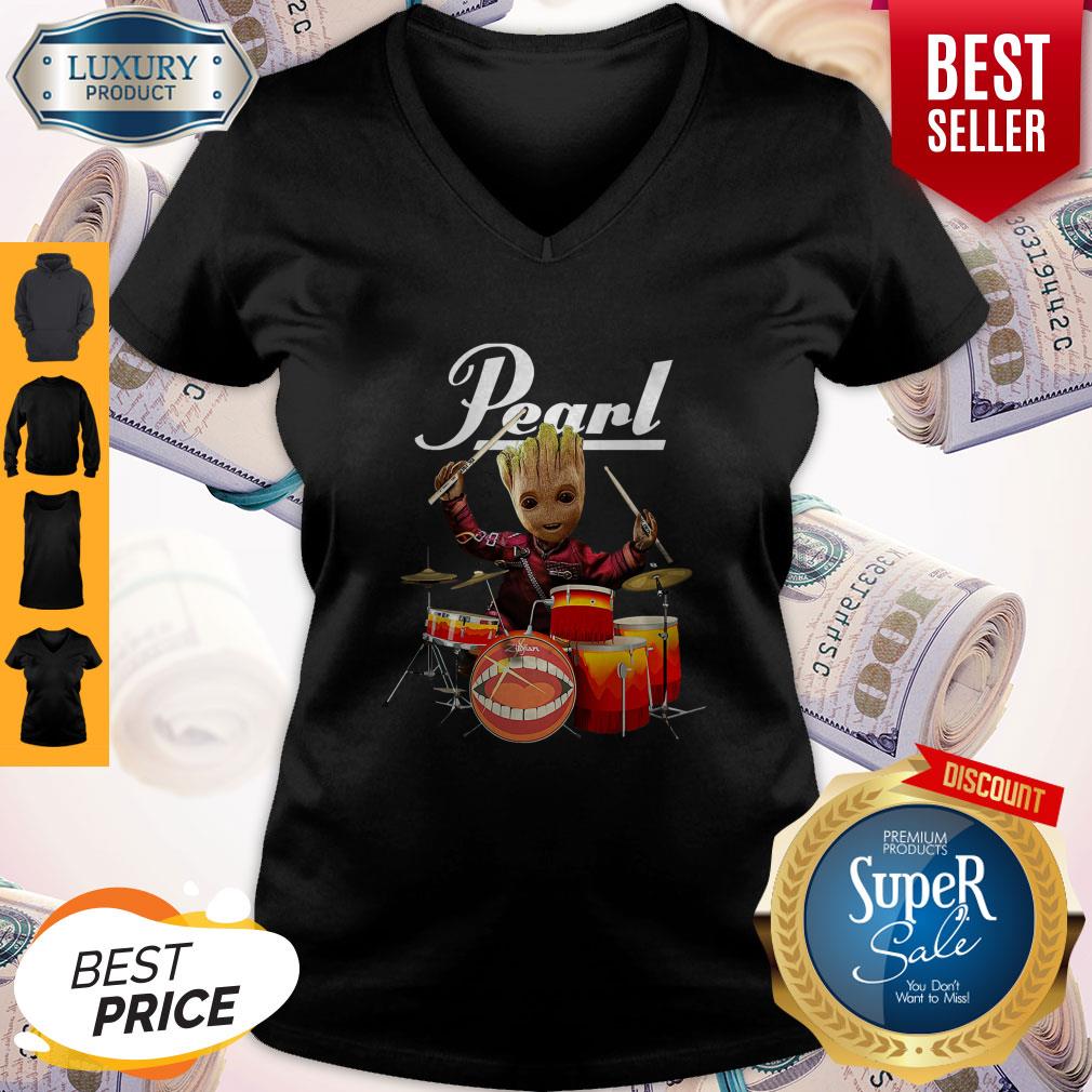 Fretty Baby Groot Show Animal Playing Drum Pearl Shirt
