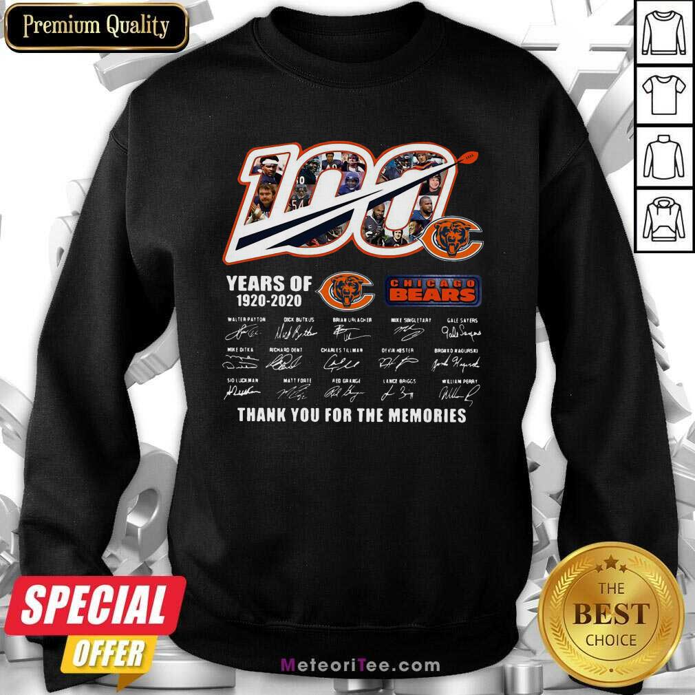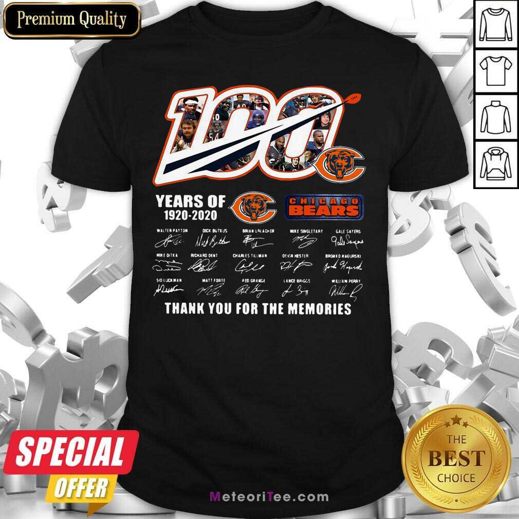 Funny 100 Years Of 1920-2020 Chicago Bears Thank For The Memories Signatures Shirt