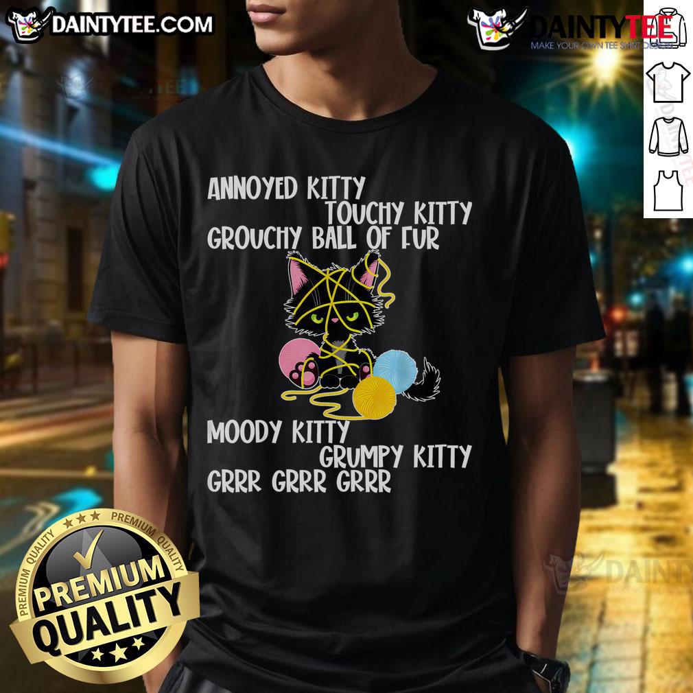 Funny Annoyed Kitty Touchy Kitty Grouchy Ball Of Fur T-Shirt