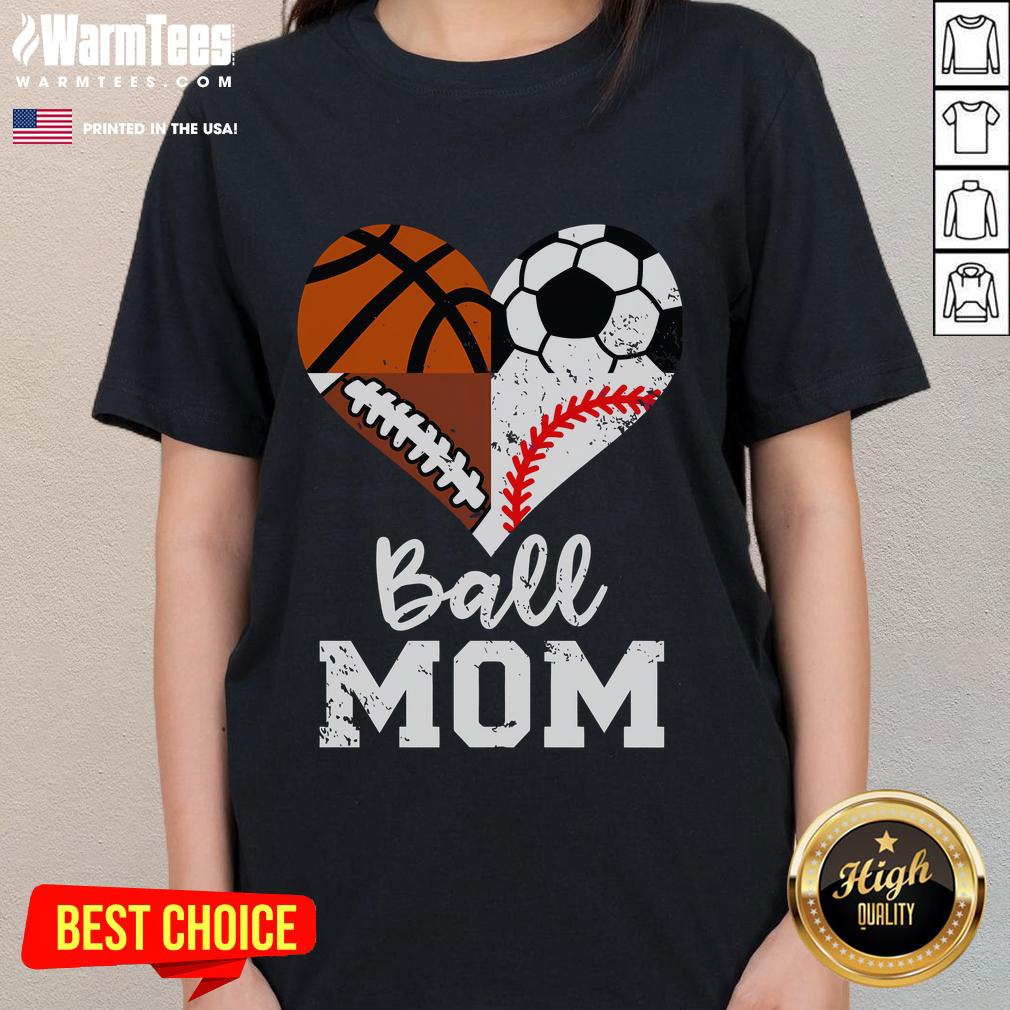 Funny Ball Mom Soccer Football Baseball Basketball Heart T-Shirt