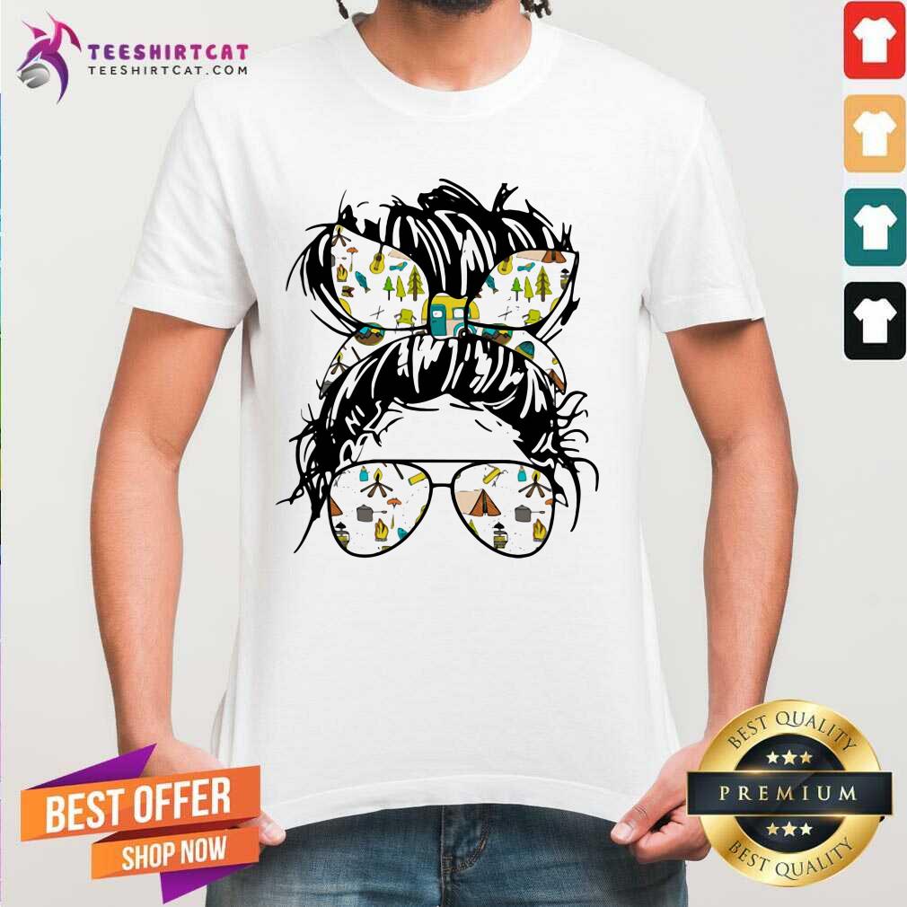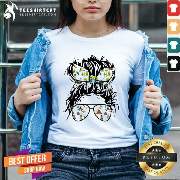 Funny Camping Life Ladies Wear Ribbon And Sunglasses Shirt