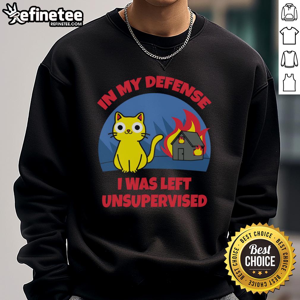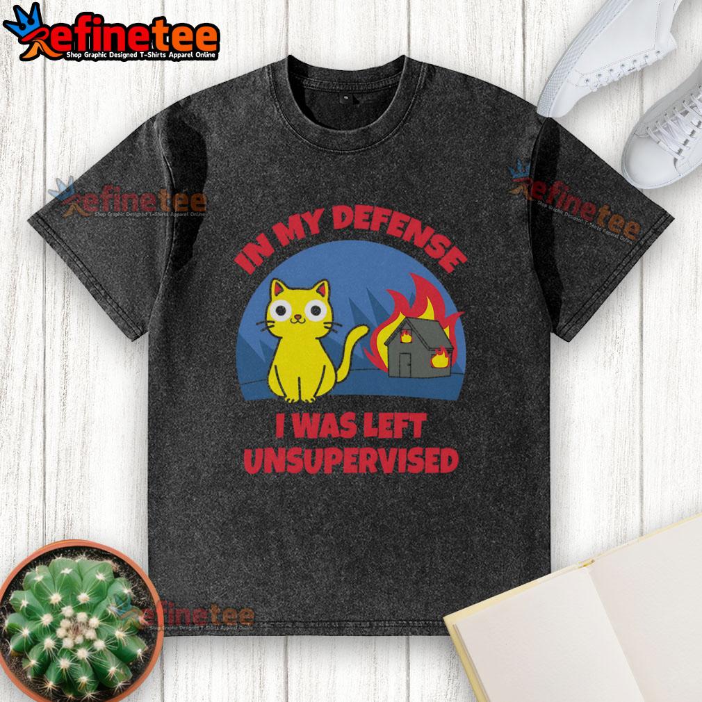 Funny Cat In My Defense I Was Left Unsupervised Burning House T-Shirt