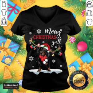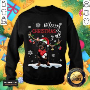 Funny Dachshund Santa Reindeer Merry Christmas Y’all Shirt
