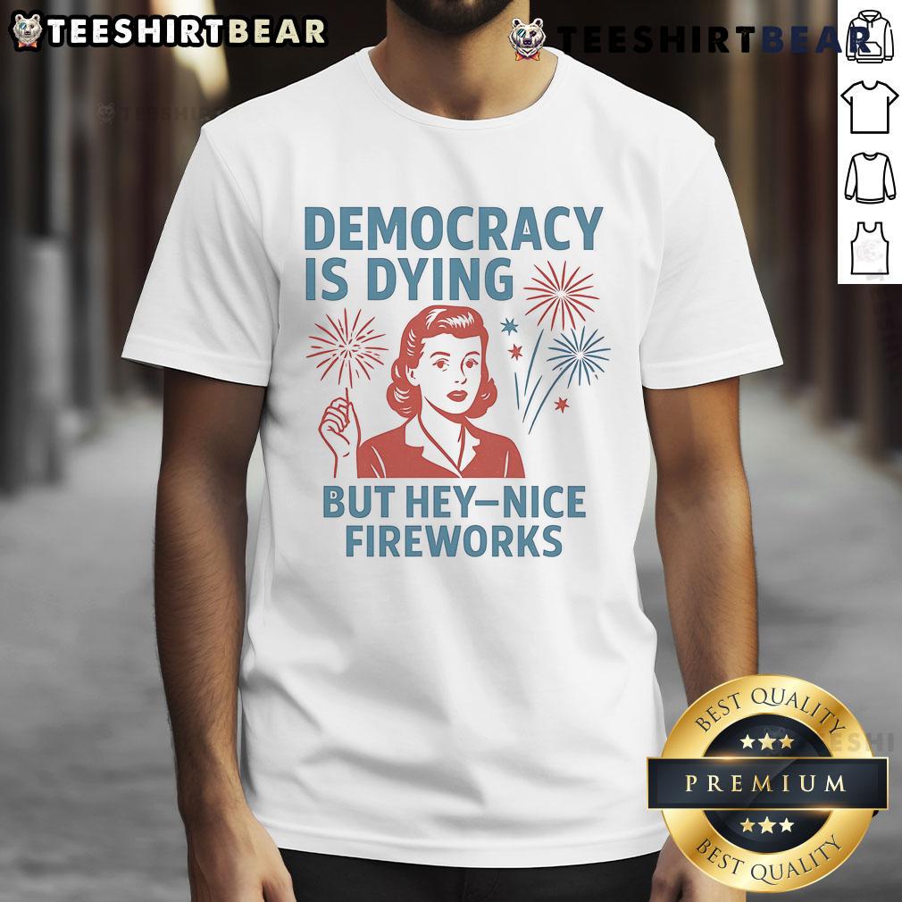 Funny Democracy Is Dying But Hey Nice Fireworks T-Shirt