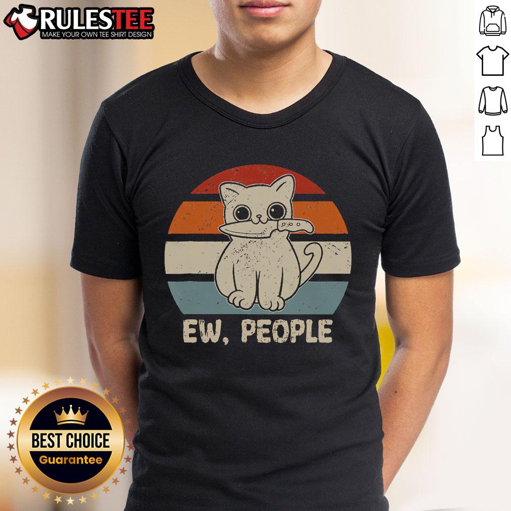 Funny Ew People Cat Knife Meow Kitty Sunset T-Shirt