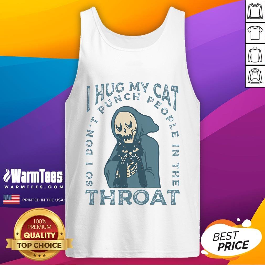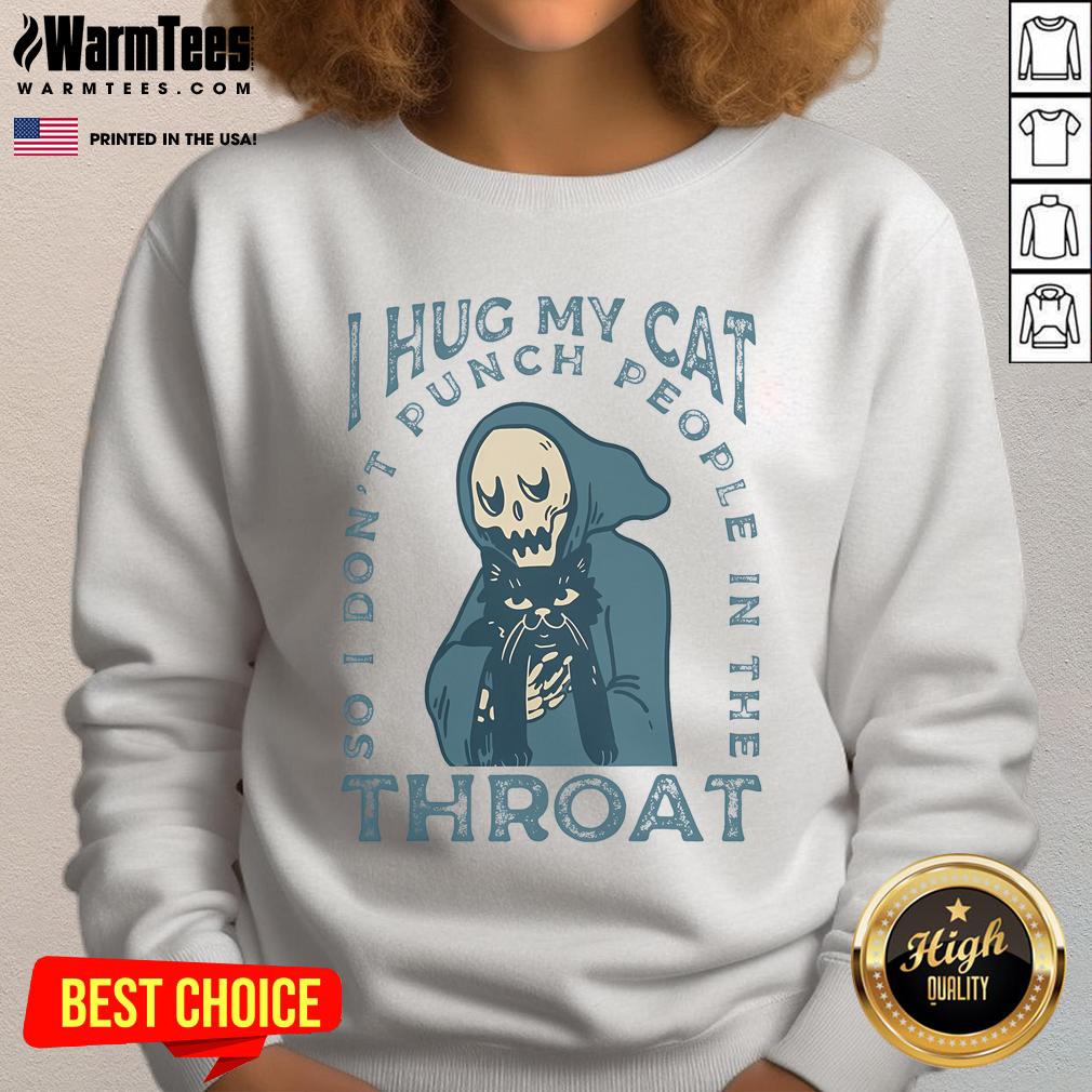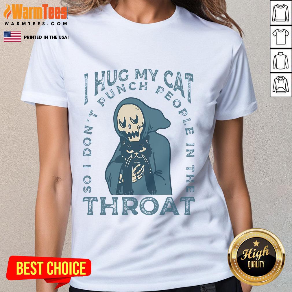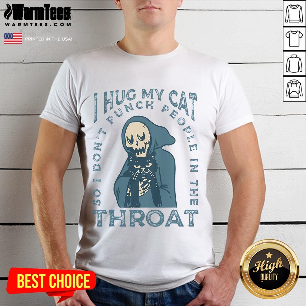 Funny I Hug My Cat So I Don’t Punch People In The Throat Cute Skeleton T-Shirt
