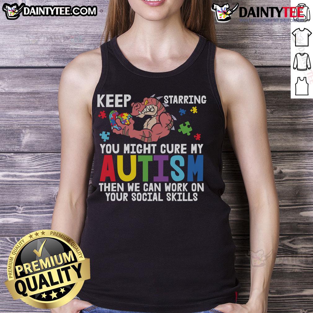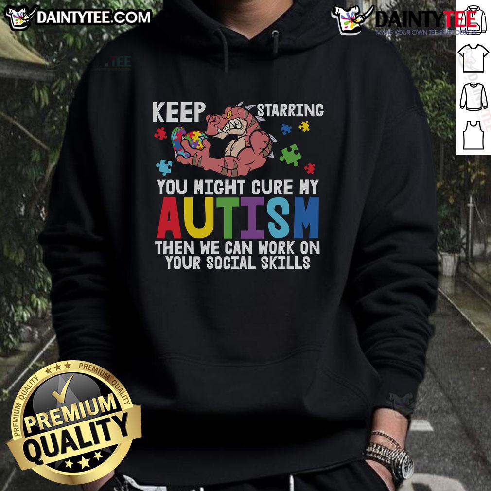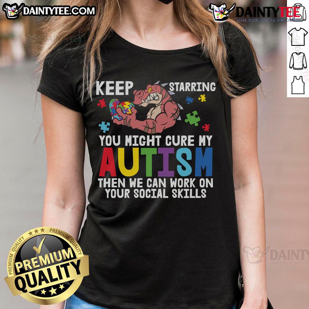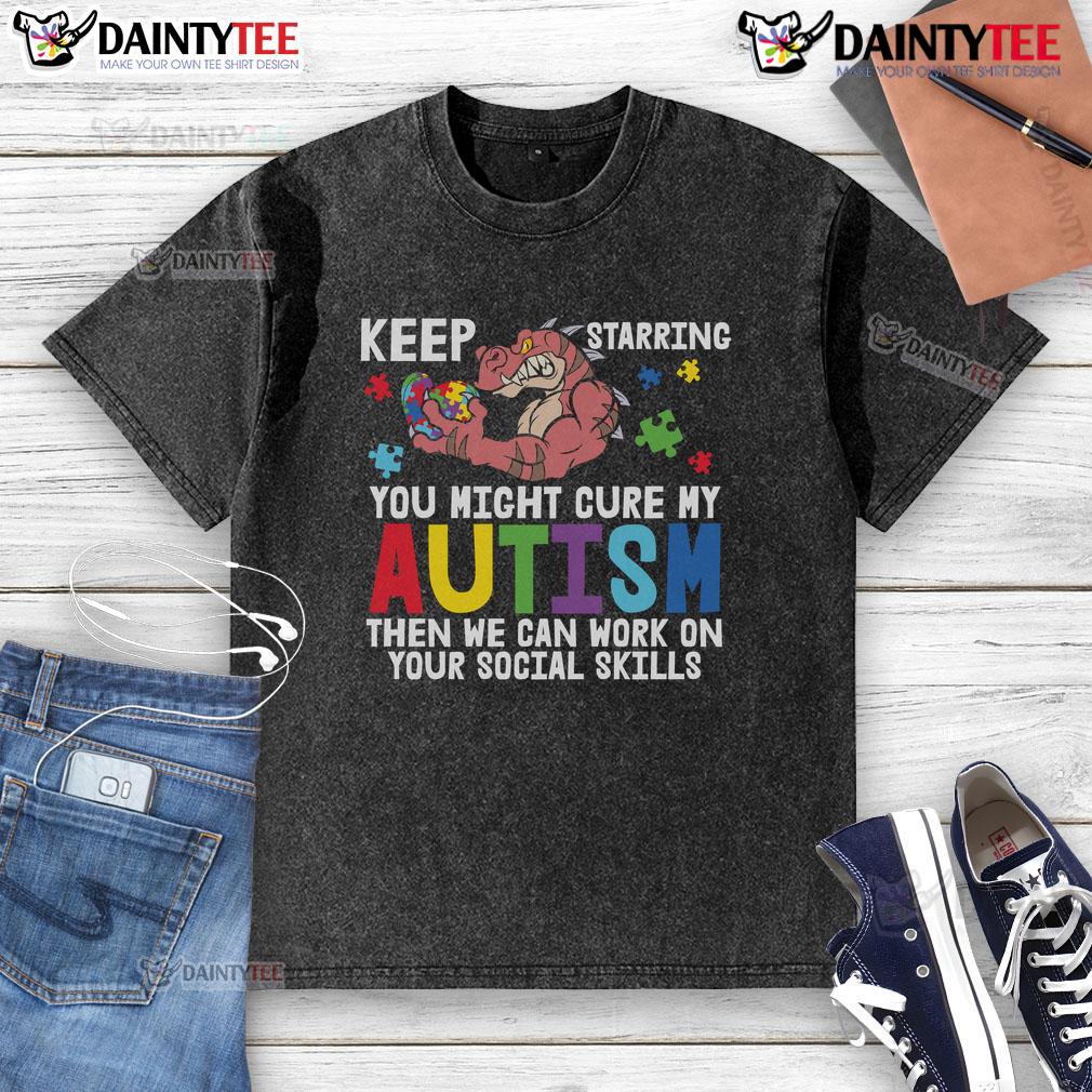 Funny Keep Staring Dinosaur Autism Awareness Puzzle Heart Social Skills T-Shirt