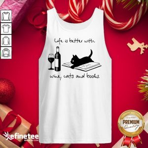 Funny Life Better Wine Cats Books Shirt