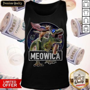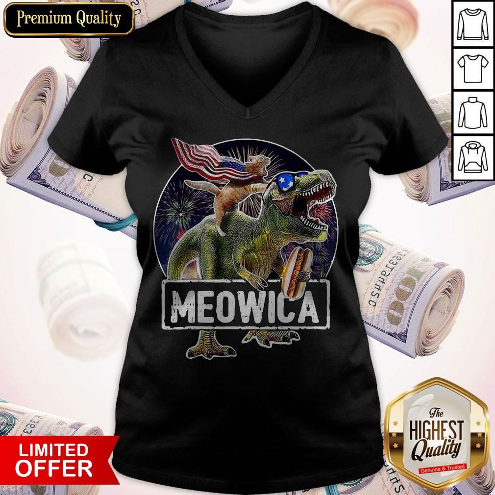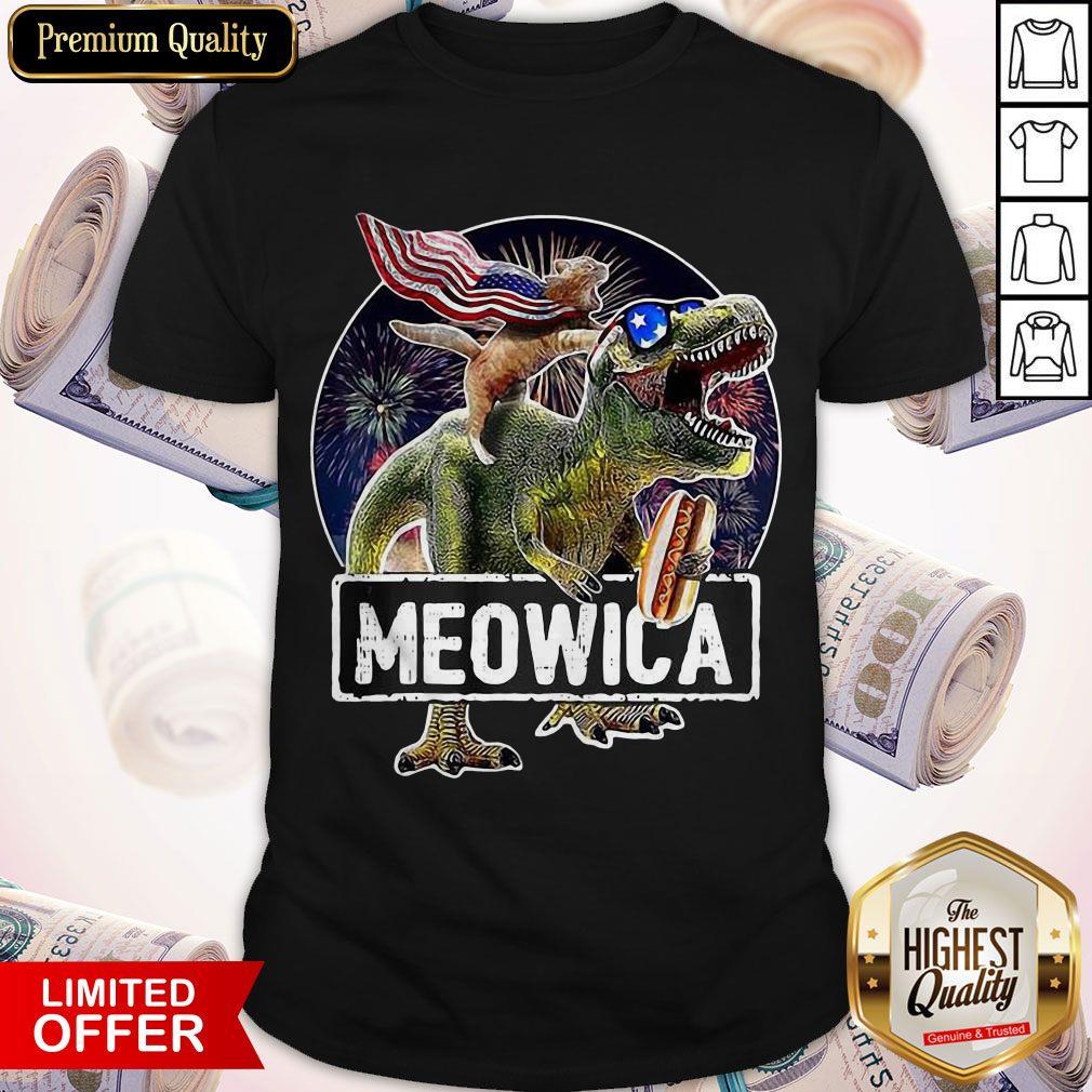 Funny Meowica Cat T-Rex Dinosaur 4th Of July Shirt