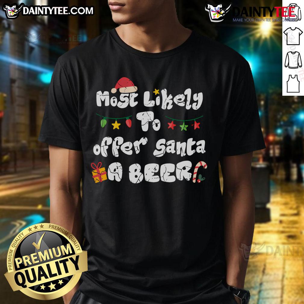 Funny Most Likely To Offer Santa A Beer Family Christmas Drinking T-Shirt