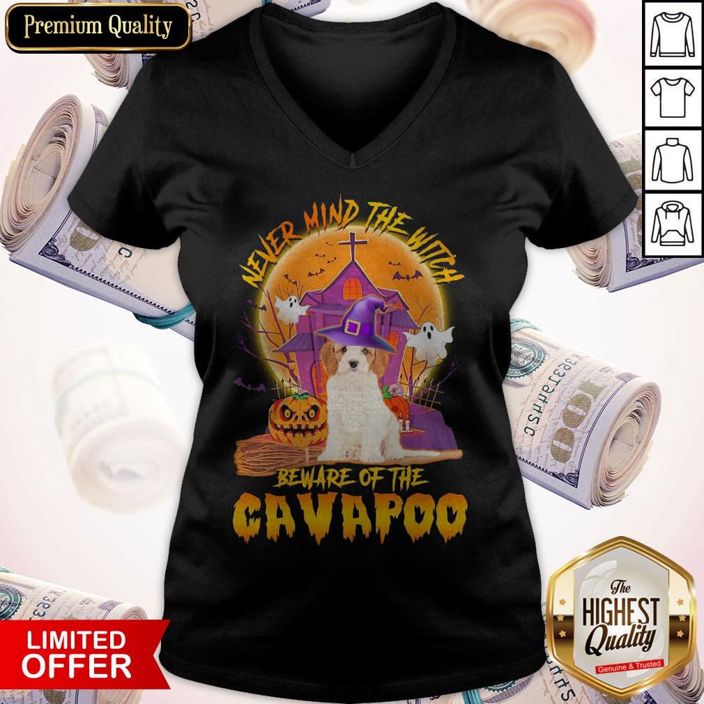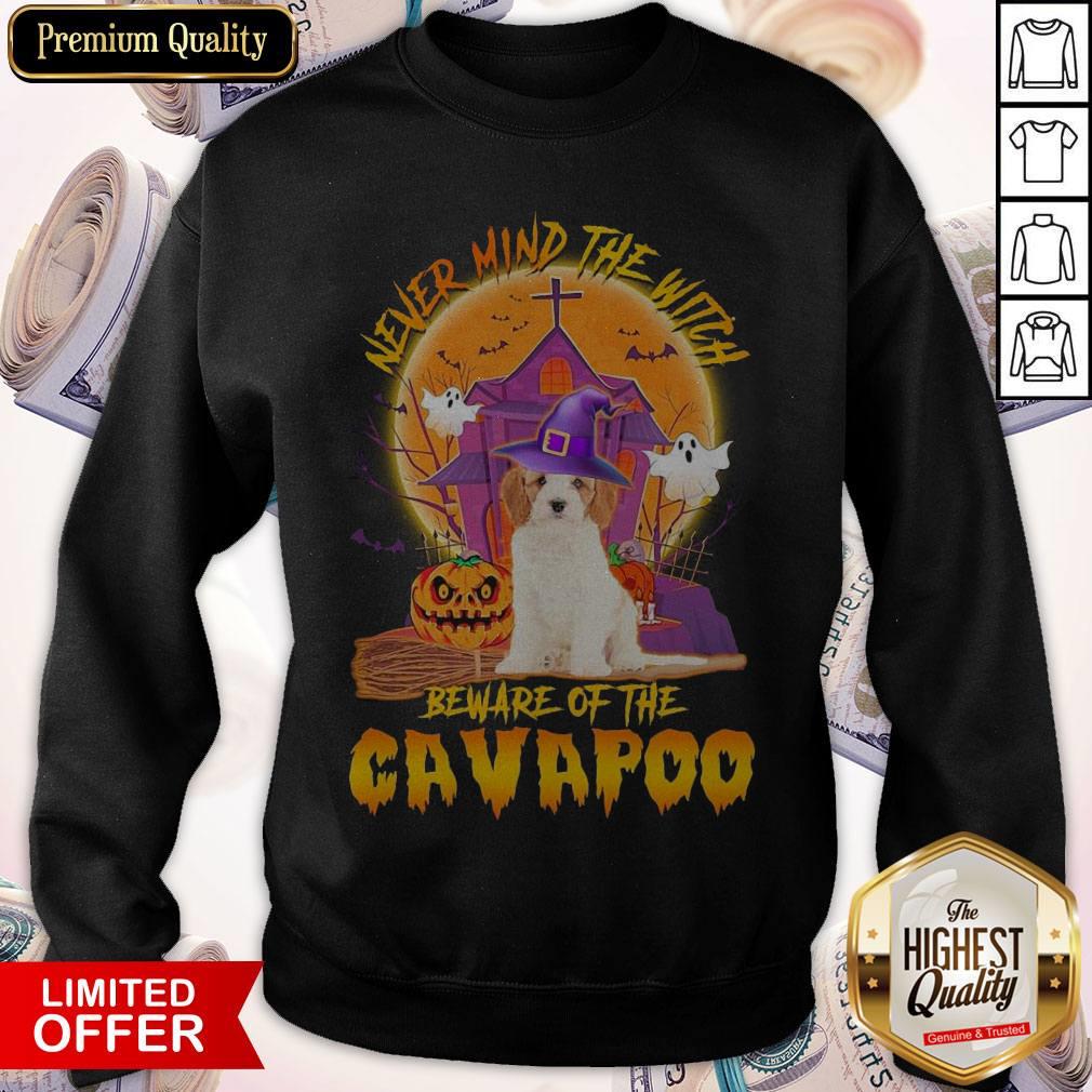 Funny Never Mind The Witch Beware Of The Cavapoo Halloween Moon Shirt