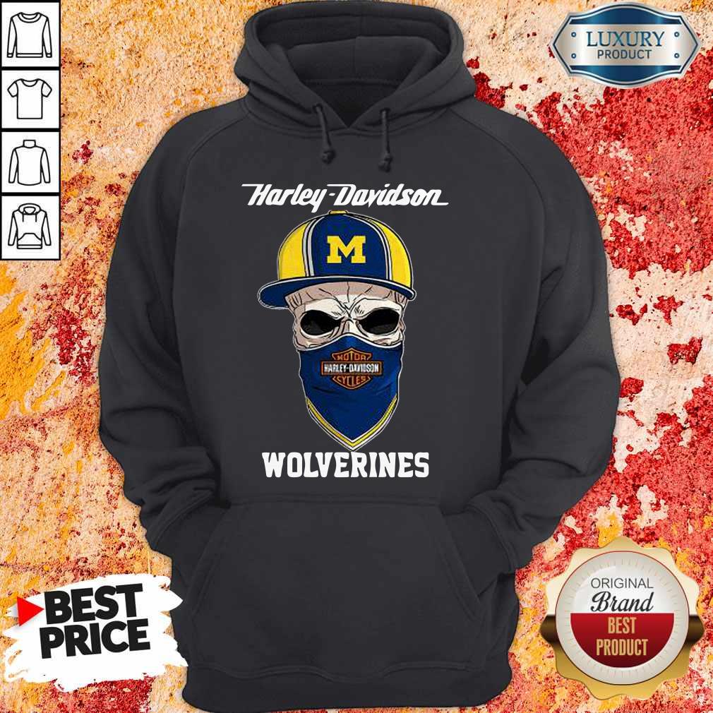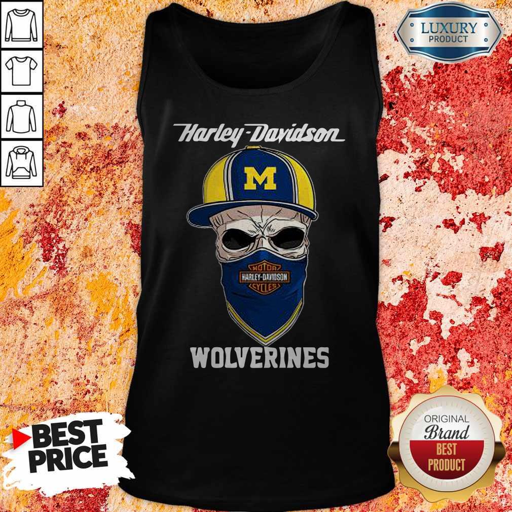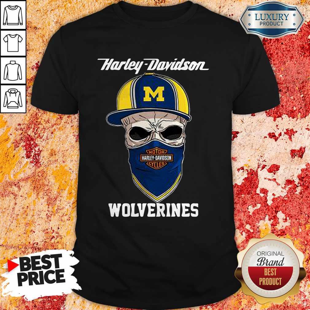 Funny Skull Harley Davision Wear A Hat Wolveringes Shirt