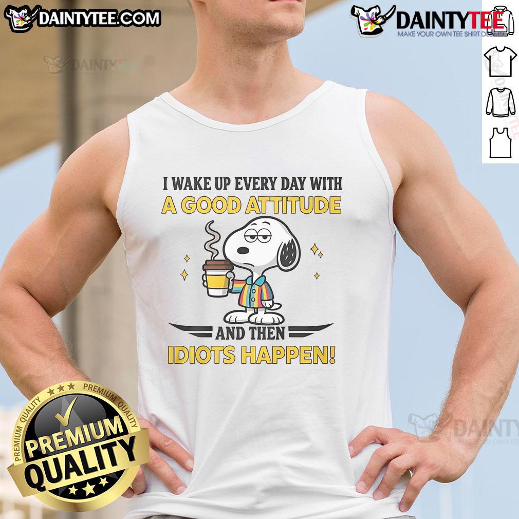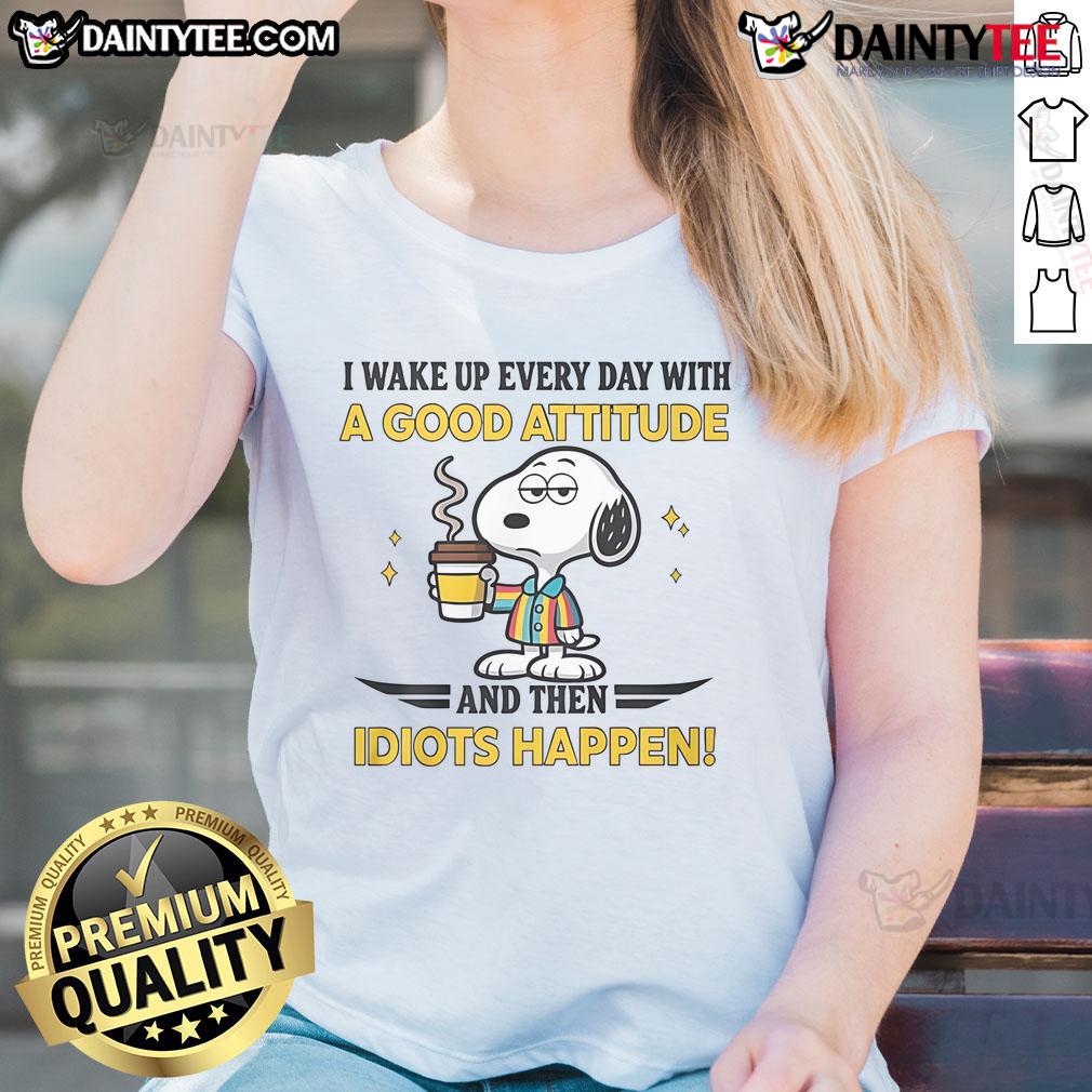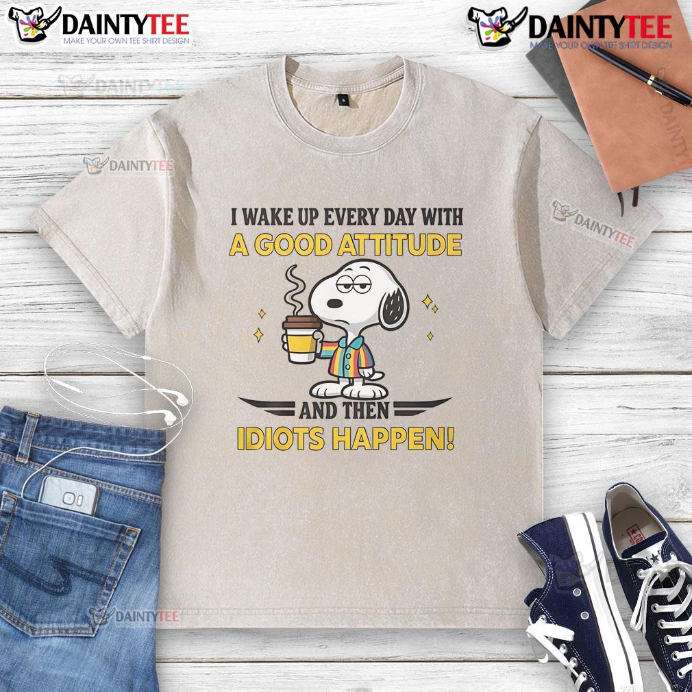 Funny Snoopy I Wake Up Everyday With A Good Attitude And Then Idiot Happen T-Shirt
