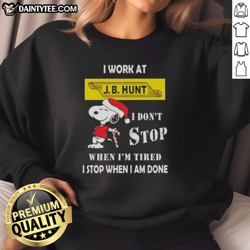Funny Snoopy I Work At J. B. Hunt I Don’t Stop When I’m Tired I Stop When I Am Done Christmas T-Shirt