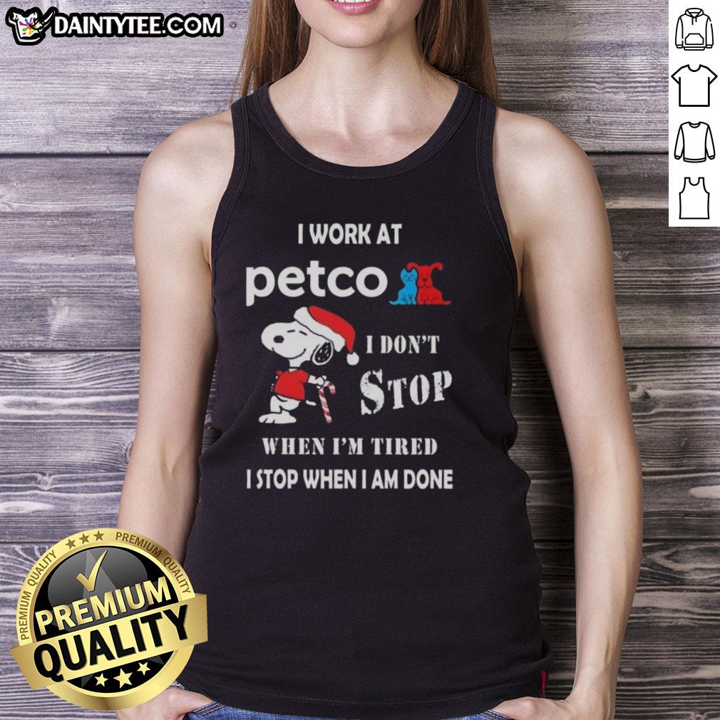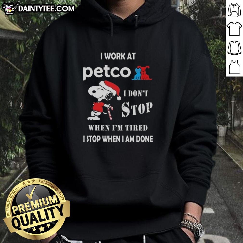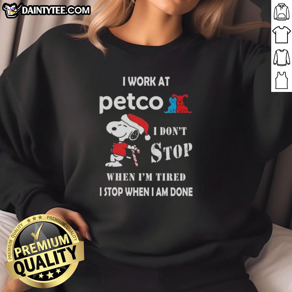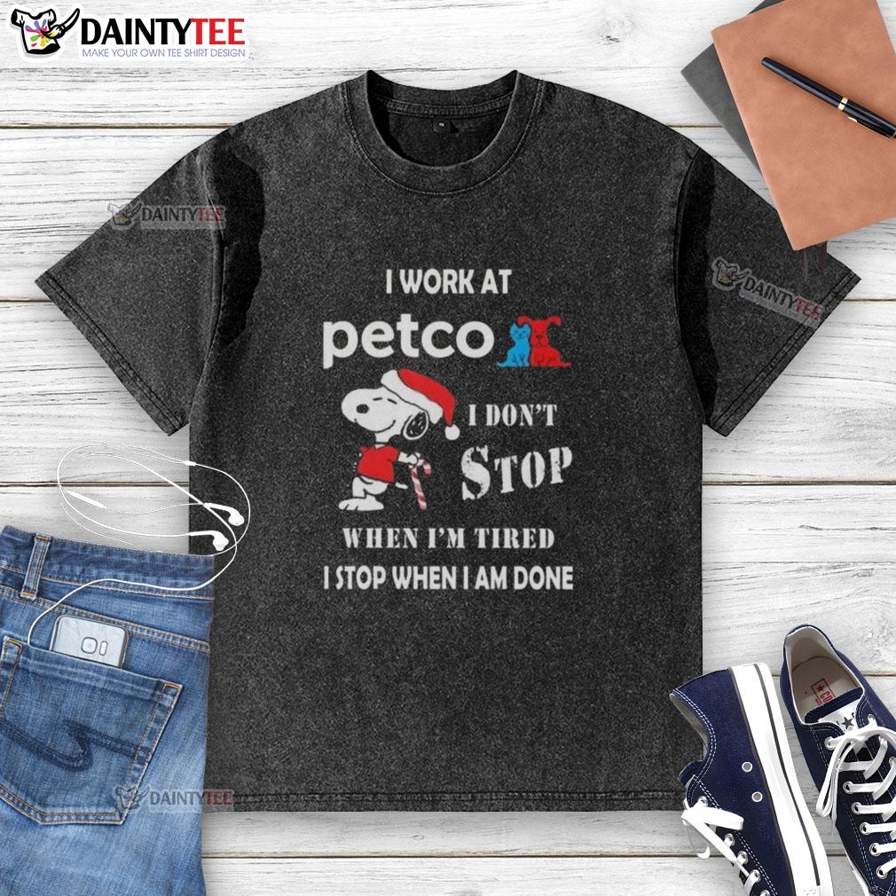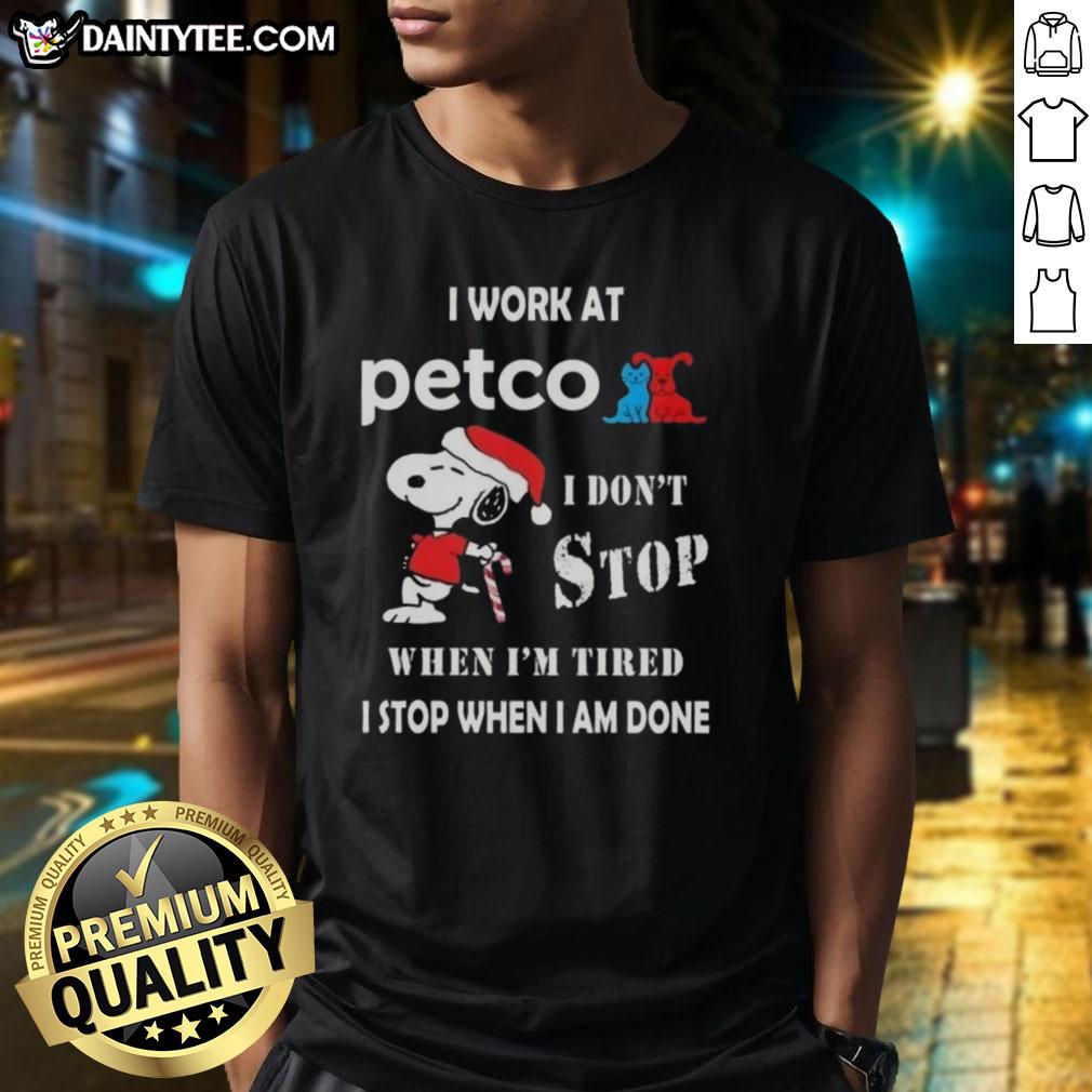 Funny Snoopy I Work At Petco I Don’t Stop When I’m Tired I Stop When I Am Done Christmas T-Shirt