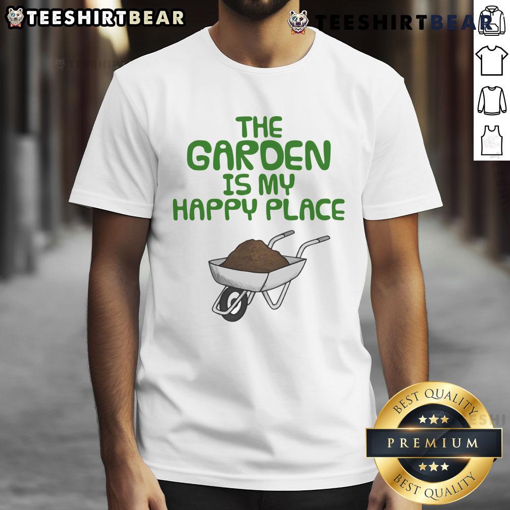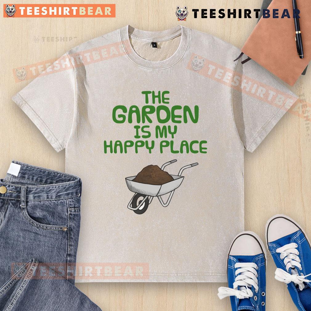 Funny The Garden Is My Happy Place Gardening Wheelbarrow T-Shirt