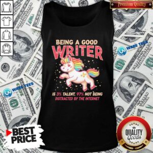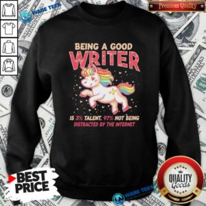 Funny Unicorn Being A Good Writer Is 3% Talent, 97% Not Being Distracted By The Internet Shirt