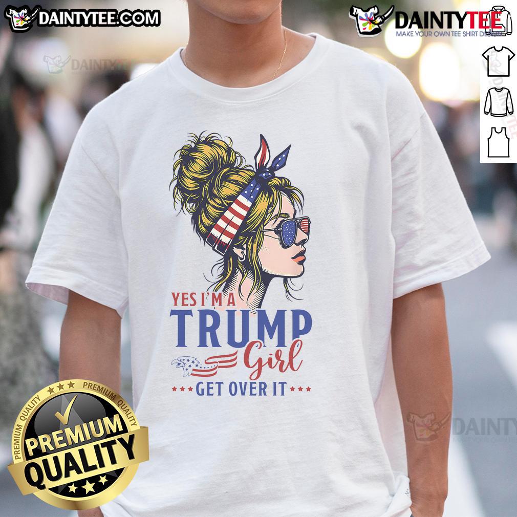 Funny Yes Im Trump Girl Get Over It Support Trump Girl Messy Bun T-Shirt