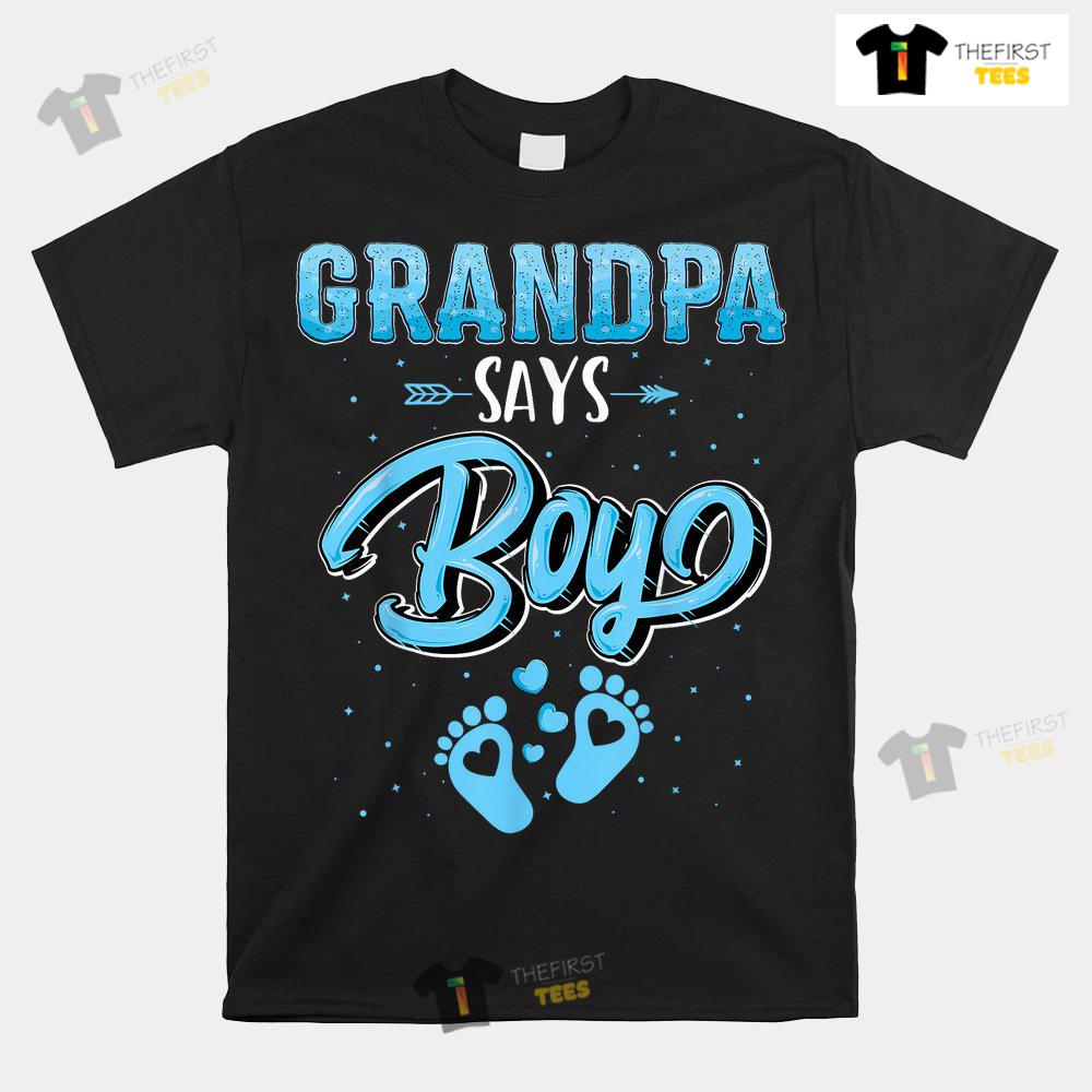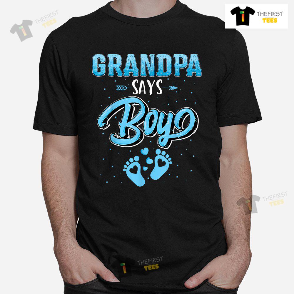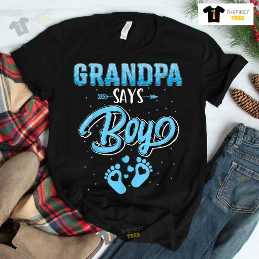 Gender Reveal Grandpa Says Boy Baby Matching Family Set Shirt