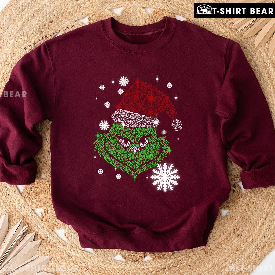 Glitter Grinch With Santa Hat How The Grinch Stole Christmas Snowflake Sweatshirt