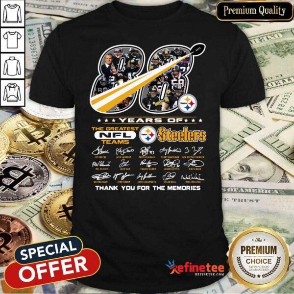 Good 88 Years Of The Greatest NFL Teams Pittsburgh Steelers Thank You For The Memories Signatures Shirt