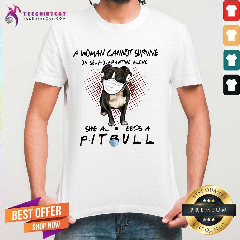 Good A Woman Cannot Survive On Self Quarantine Alone She Also Needs A Pitbull Shirt