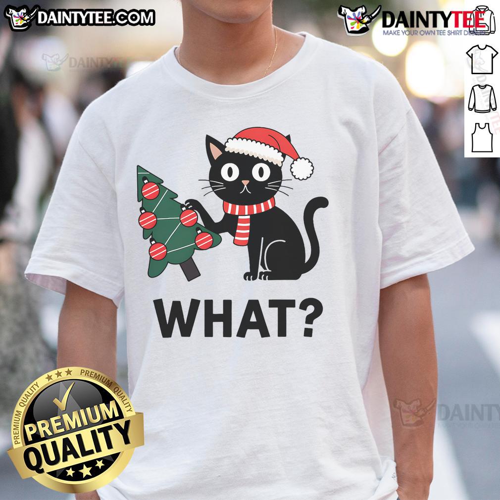 Good Black Cat Gift Pushing Christmas Tree Over Cat What T-Shirt