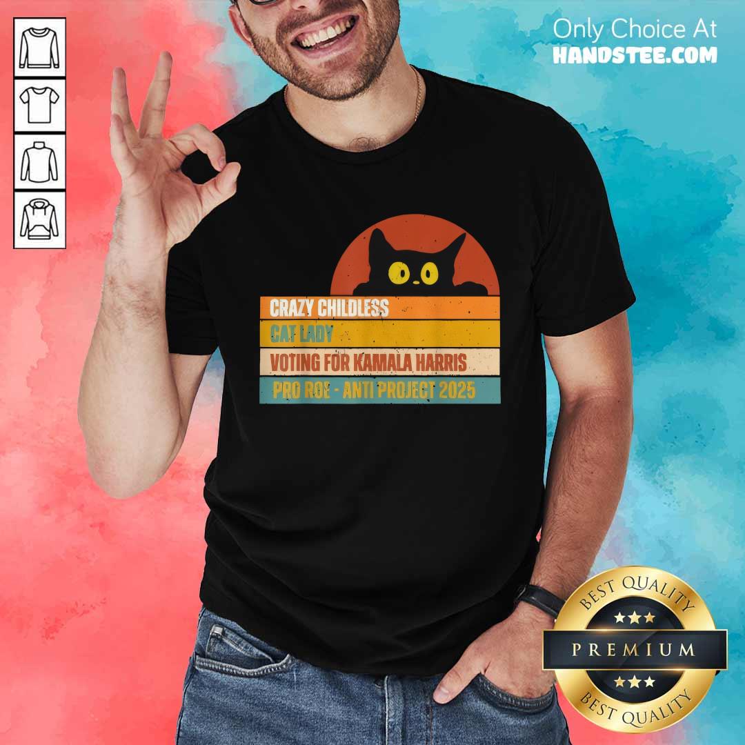 Good Crazy Childless Cat Lady Voting For Kamala Harris Pro Roe T-Shirt
