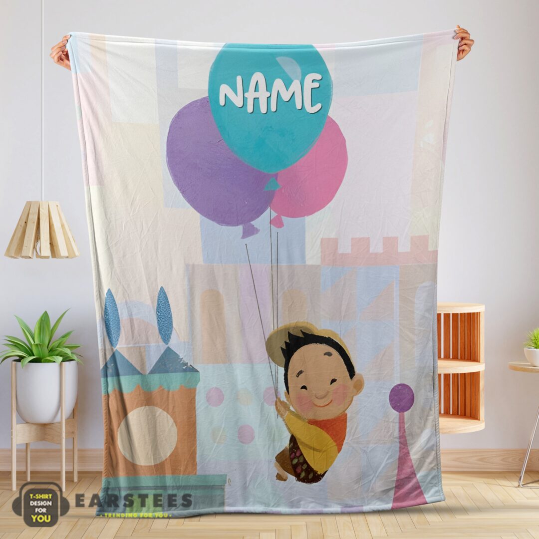 Good Disney Cartoon Up Boy With Balloon Blanket Fleece Customized Blanket