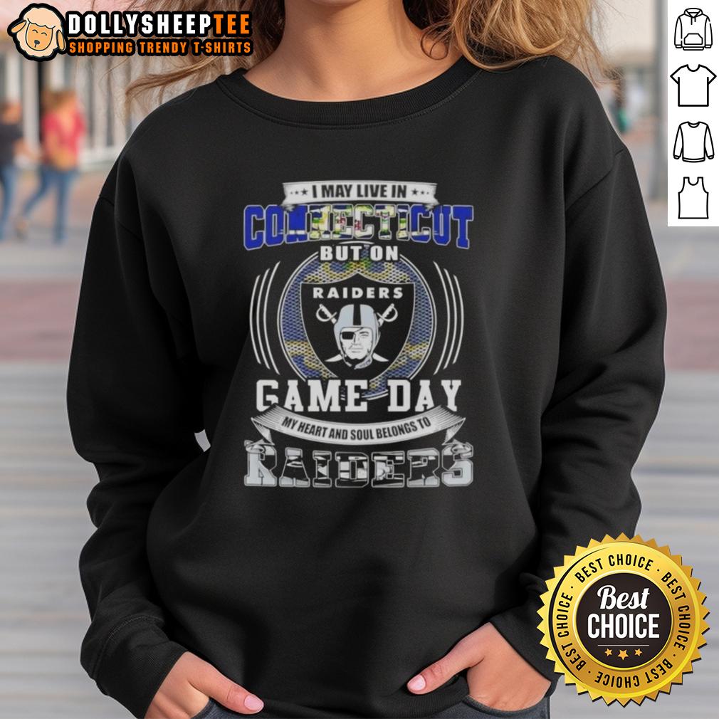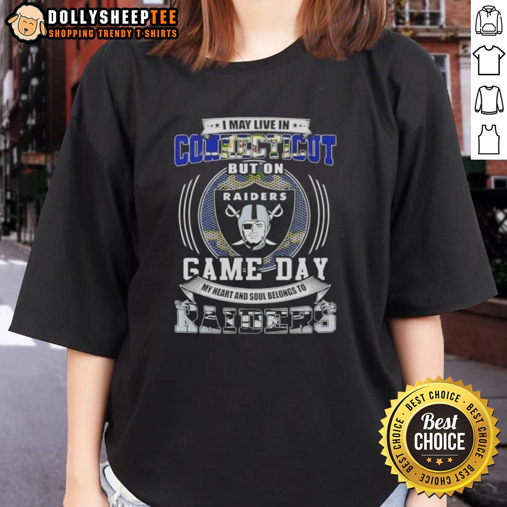Good I May Live In Connecticut But On Game Day My Heart And Soul Belongs To Las Vegas Raiders Football T-Shirt