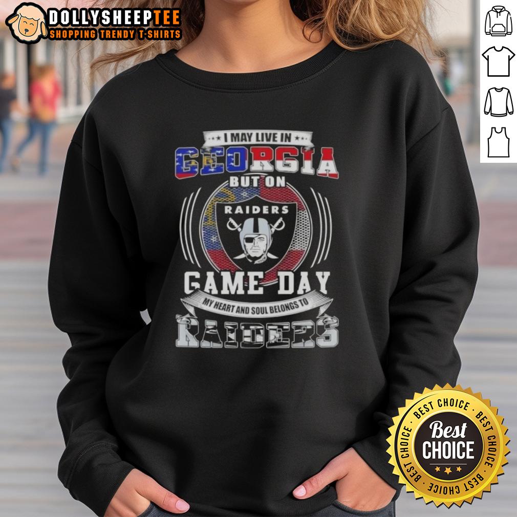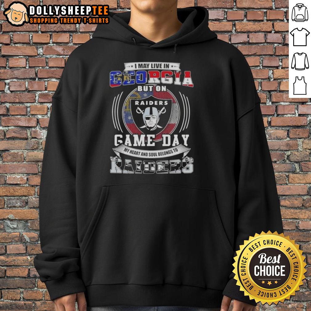 Good I May Live In Georgia But On Game Day My Heart And Soul Belongs To Las Vegas Raiders Football T-Shirt