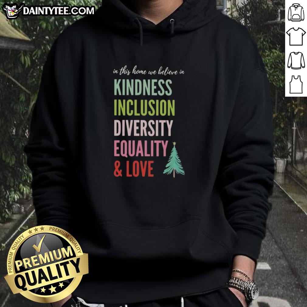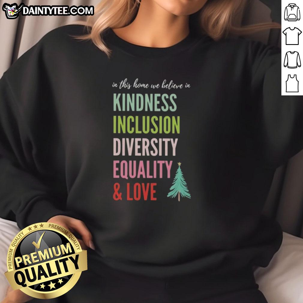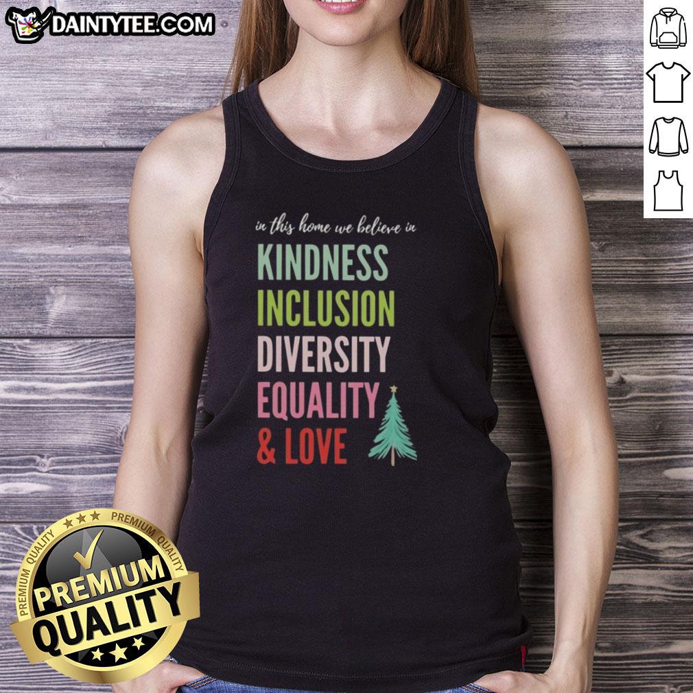 Good In This Home We Believe In Kindness Inclusion Diversity Equality And Love Christmas Tree T-Shirt