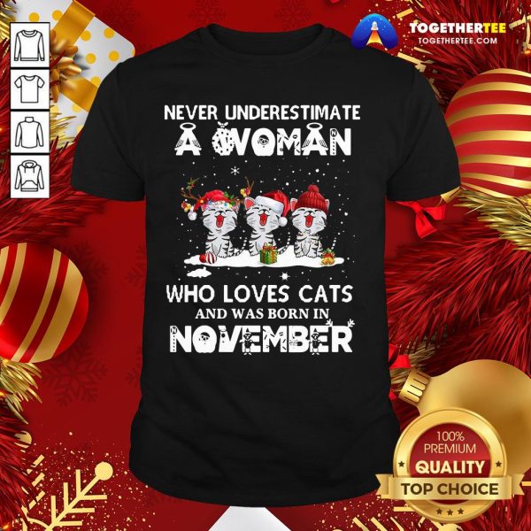 Good Never Underestimate A Woman Who Loves Cats Santa And Was Born In November Shirt