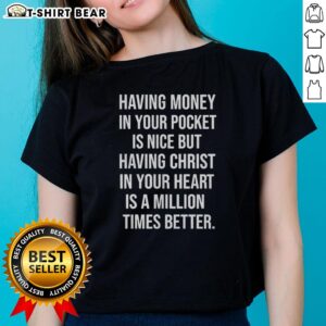 Good Official Having Money In Your Pocket Is Nice But Having Christ In Your Heart Is Better T-Shirt