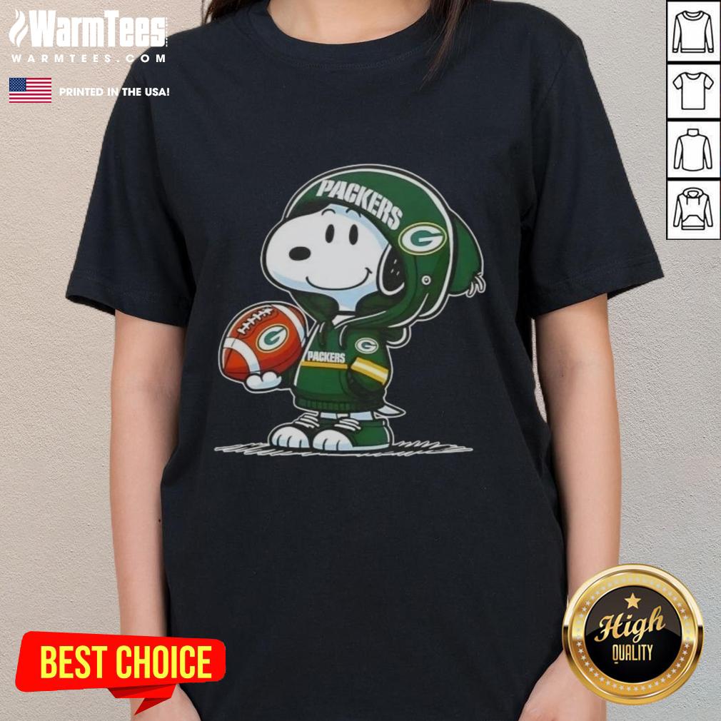 Good Peanuts Snoopy Wearing Hoodie Green Bay Packers And Smiling At Fans T-Shirt