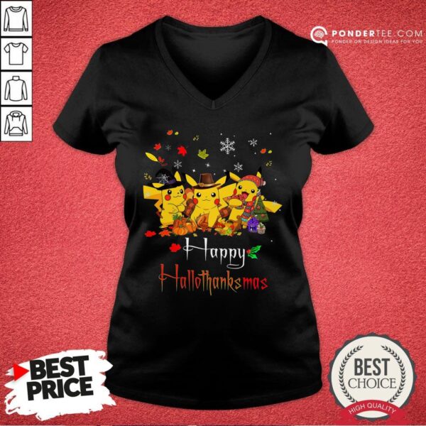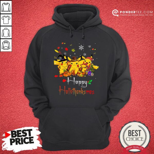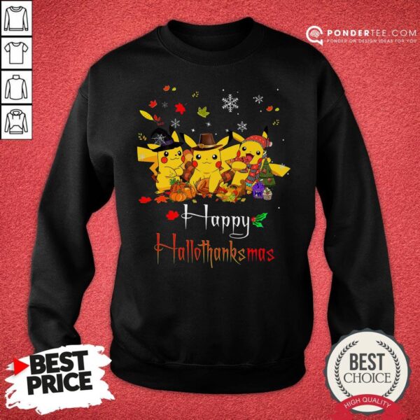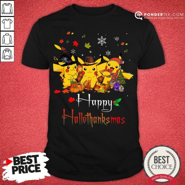 Good Pikachu Halloween And Christmas Happy Hallothanksmas Shirt