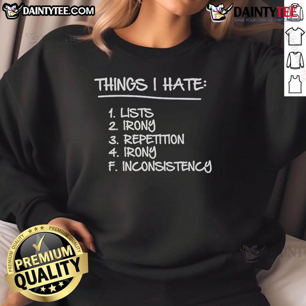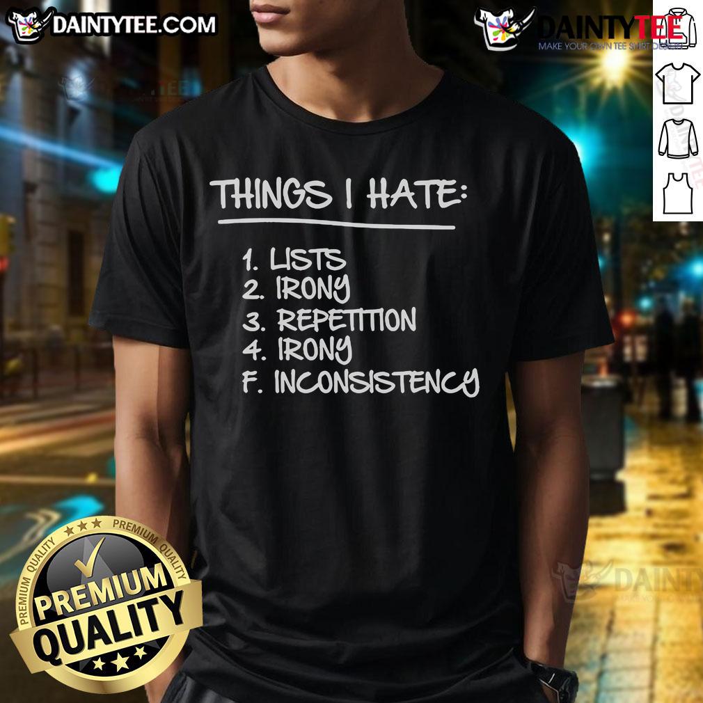 Good Things I Hate Lists Irony Repetition Irony Inconsistency T-Shirt
