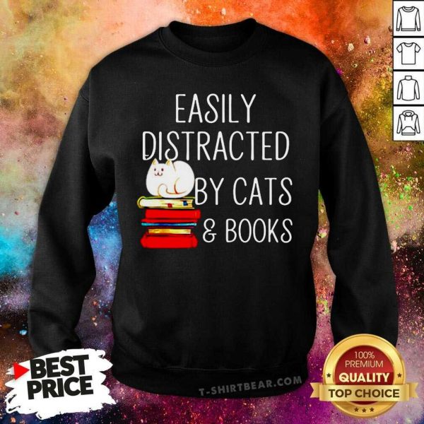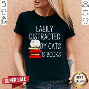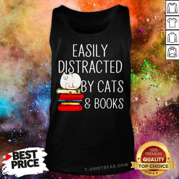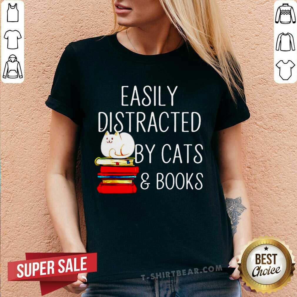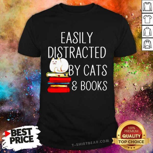 Grateful Easily Distracted By Cats And Books Shirt