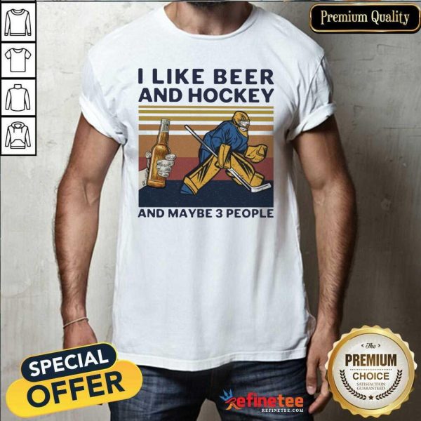 Great I Like Beer And Hockey And Maybe 3 People Vintage Shirt
