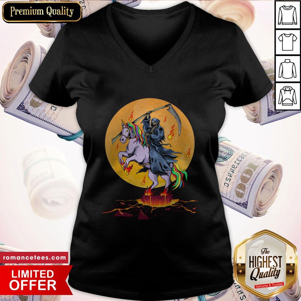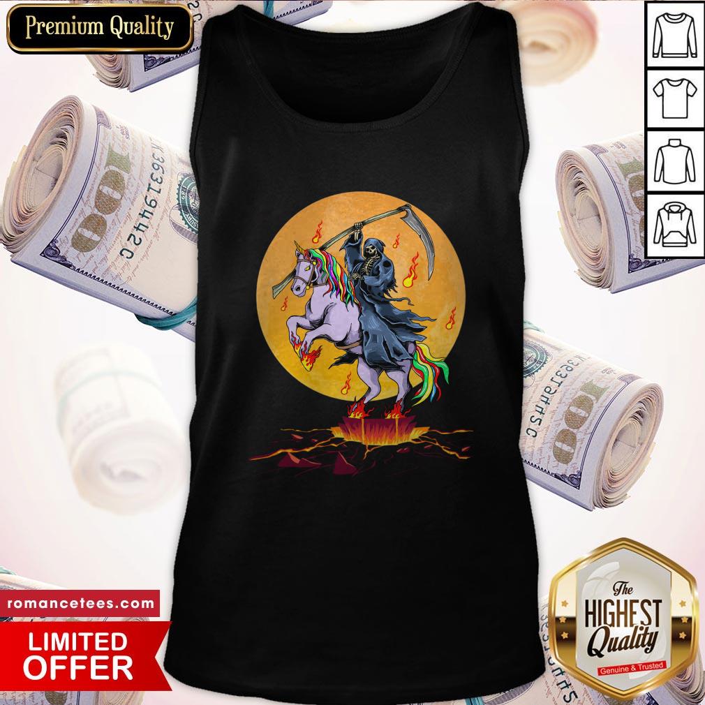 Grim Reaper With Unicorn Under The Moon Halloween Costume Shirt