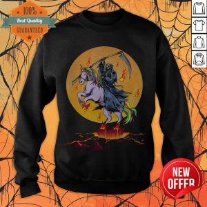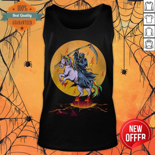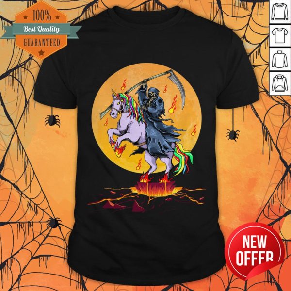 Grim Reaper With Unicorn Under The Moon Halloween Costume T-Shirt