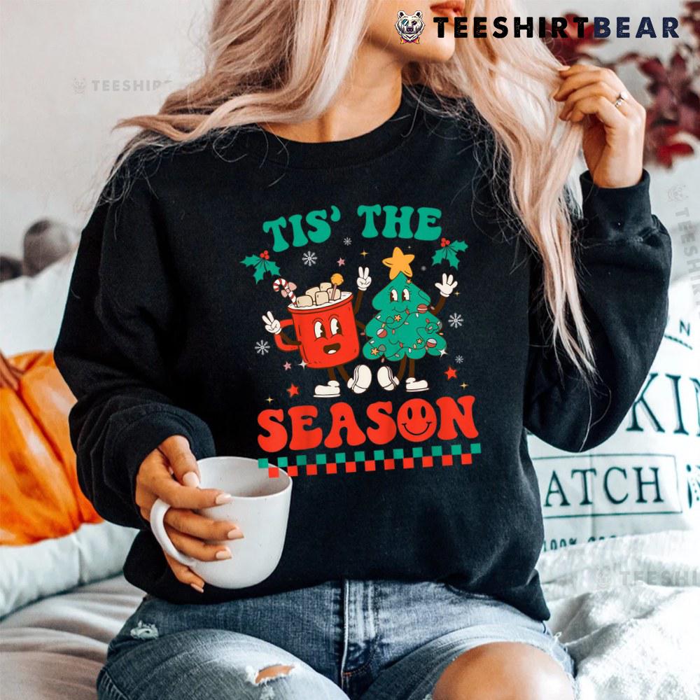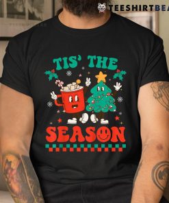 Groovy Tis The Season Christmas Hippie Hot Cocoa Pine Tree Shirt