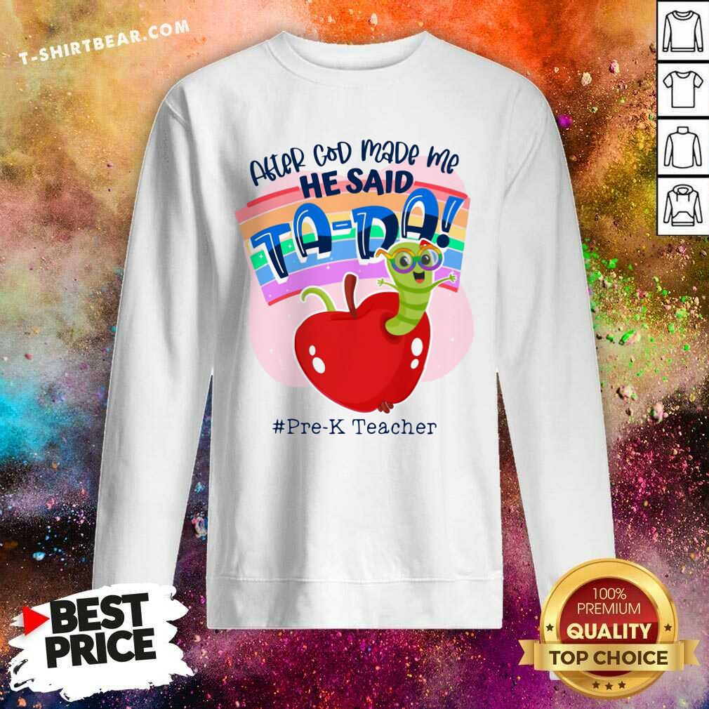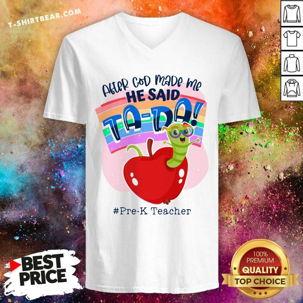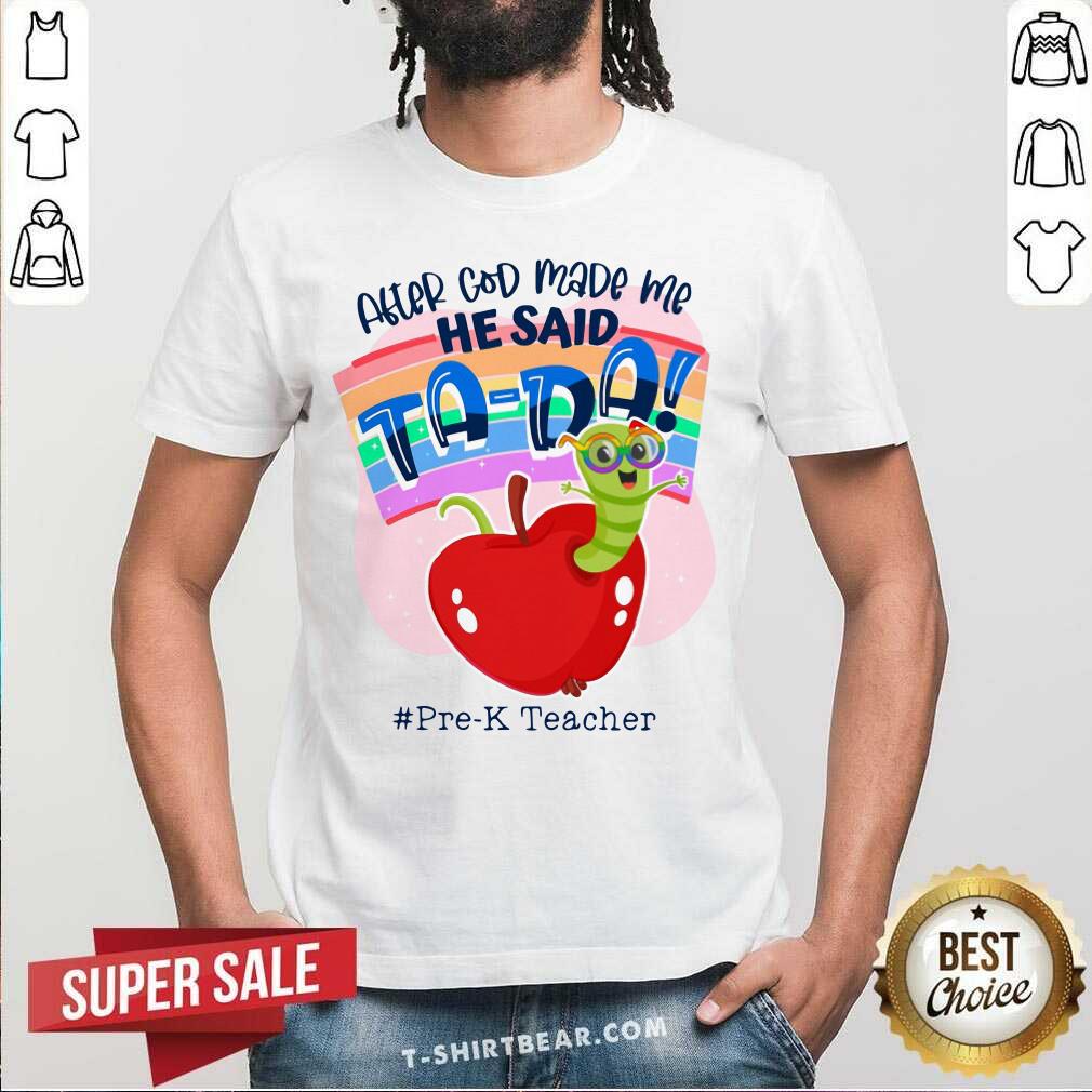 Grub In Apple After God Made Me He Said Tada Pre K Teacher Shirt